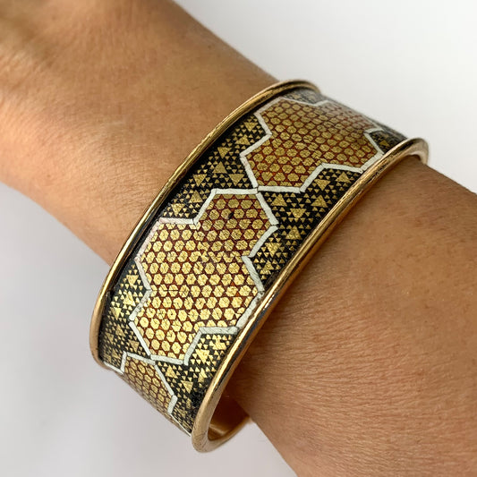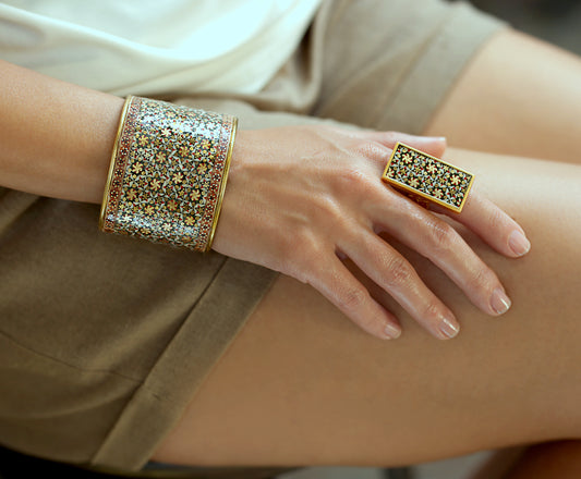 Discover our collection of bracelets, where the timeless elegance of Persian Khatam inlay meets the warmth of 24K gold. Each piece is a wearable work of art, handcrafted to adorn your wrist with the rich heritage of Persian craftsmanship.