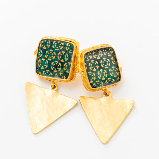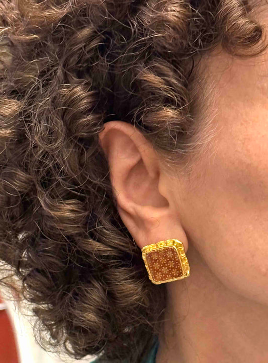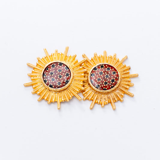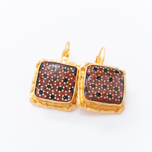 Discover our collection of earrings, where the art of Persian Khatam meets the allure of gold. Each pair is a unique masterpiece, handcrafted to bring a touch of timeless elegance to your every day.