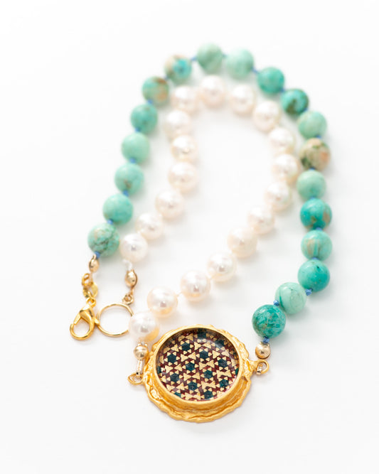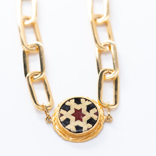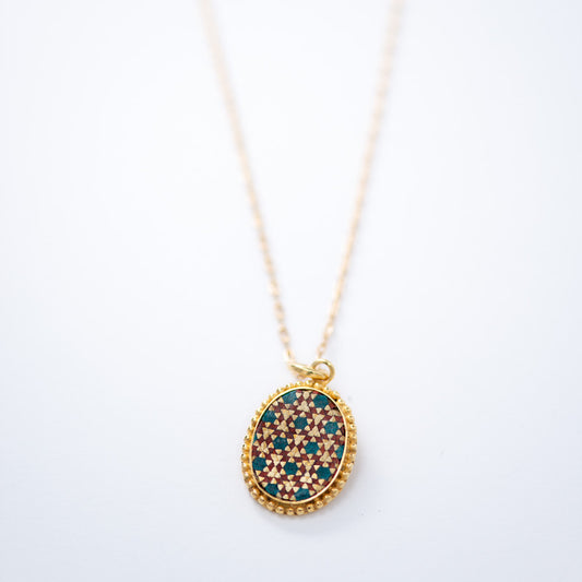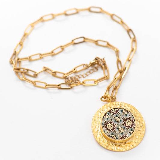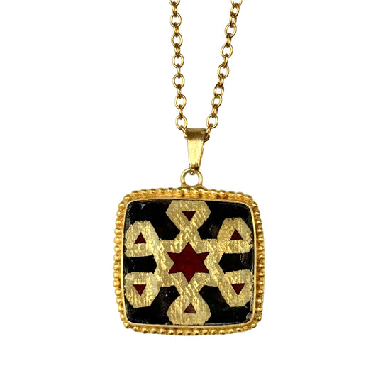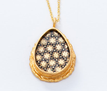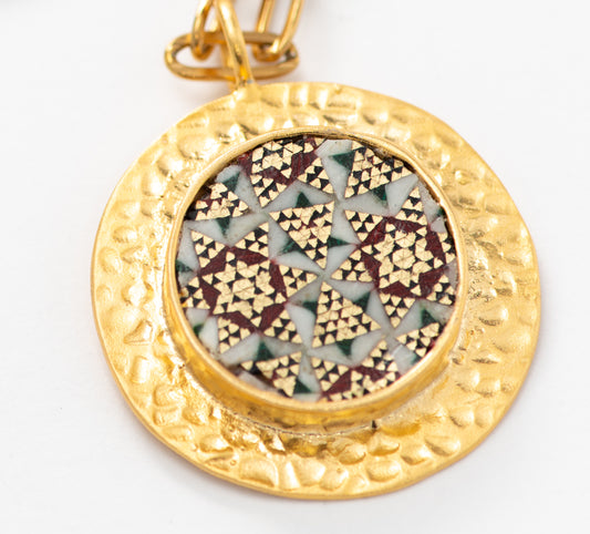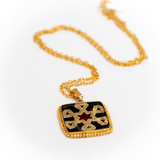 Discover our collection of necklaces, where Persian Khatam inlay and gold unite in a harmonious dance of elegance. Each piece is a handcrafted expression of timeless beauty, designed to adorn your neckline with grace and sophistication.