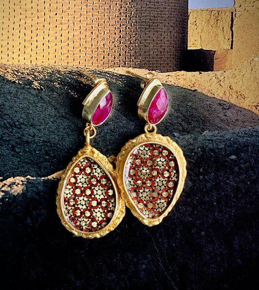 22k Gold plated brass, Handmade Isfahan Khatam (wood, brass, bone)