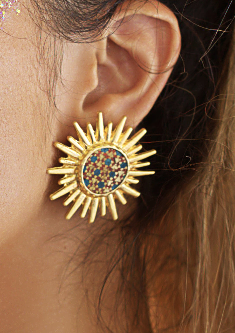 Introducing Lozi's Sun stud earrings, a modern take on timeless elegance. The earring features a bold sun shape, adding a touch of sophistication to any outfit. Elevate your look with these exclusive pieces, perfect for the fashion-forward and art-inspired individual.